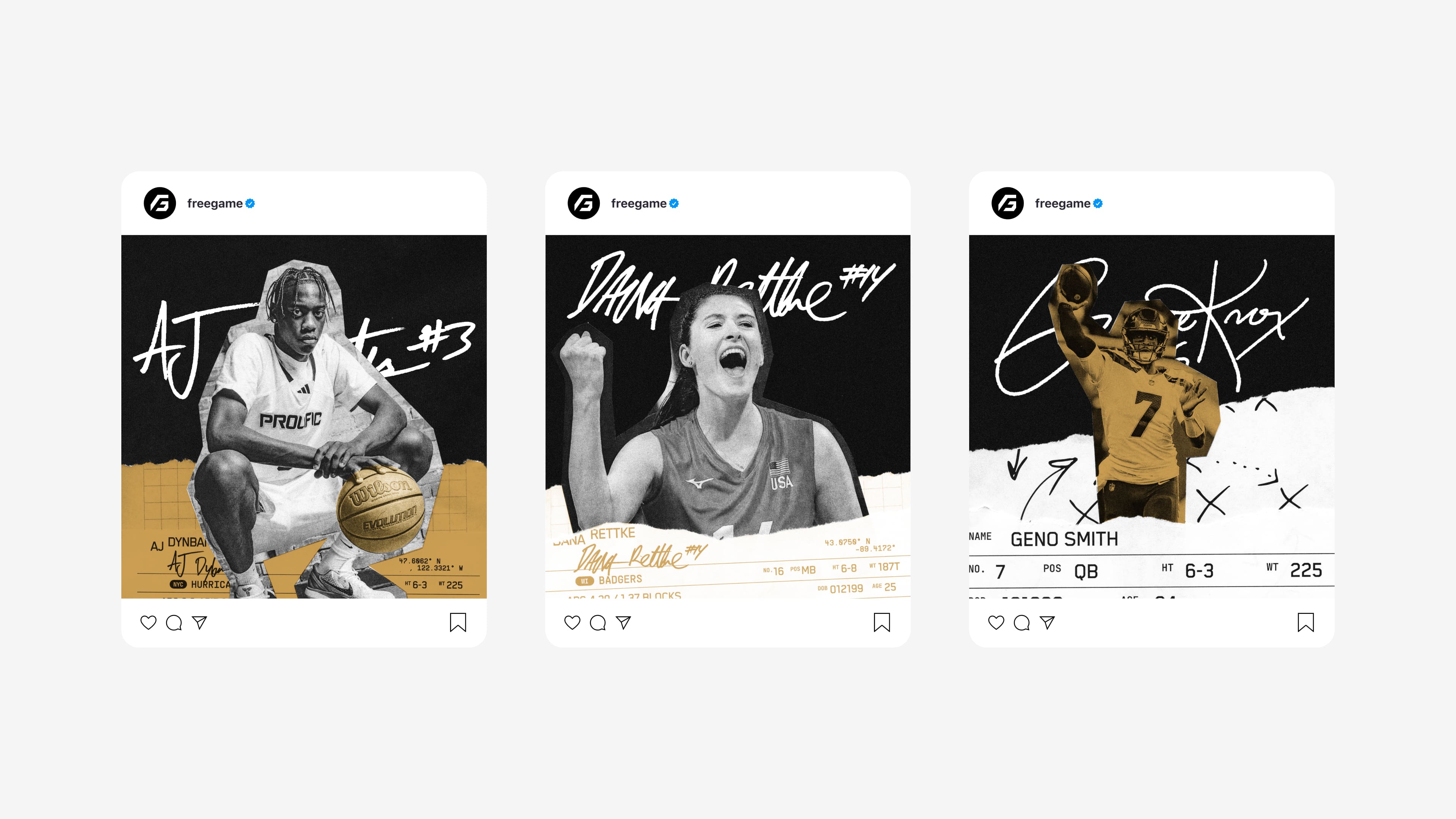 FreeGame is a player-run athlete representation agency founded by current and former professional basketball players. The goal was to create an identity that felt owned by the athletes themselves — direct, personal, and grounded in lived experience rather than traditional agency polish.